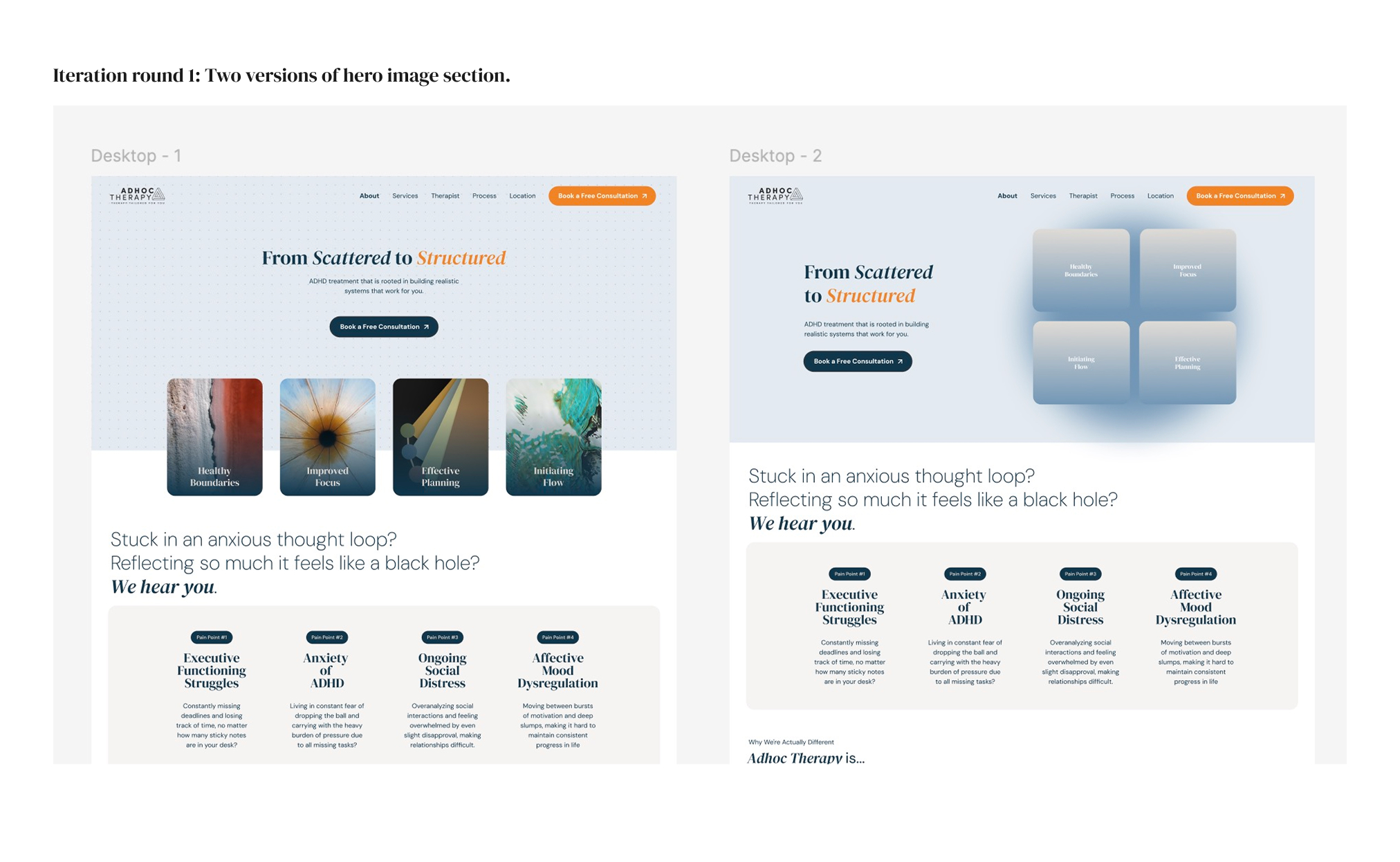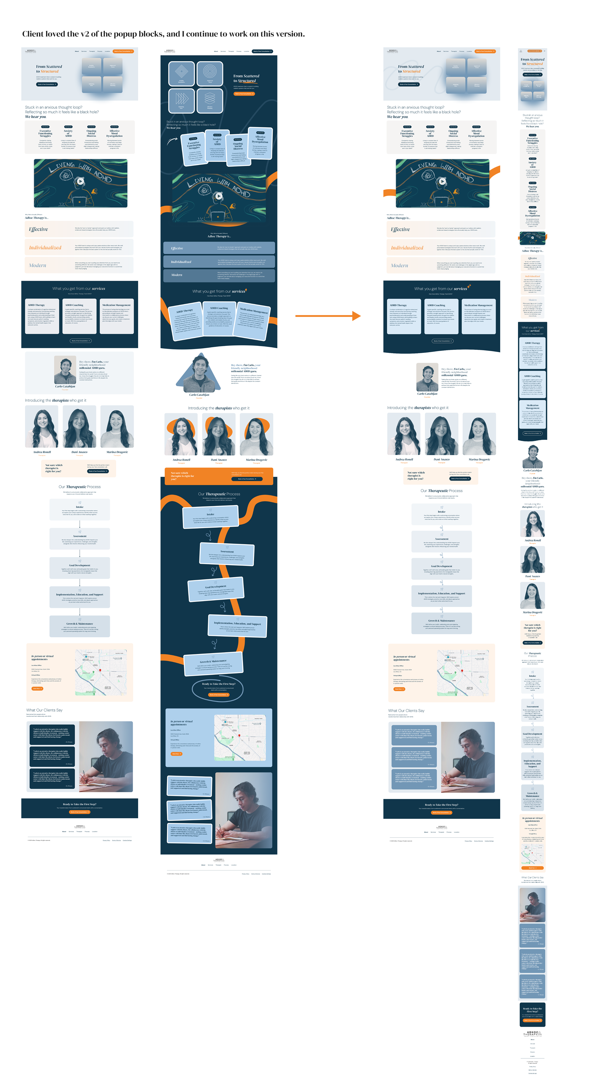 Final Version – Included both desktop and mobile responsive designs, while also taking into account the limitations and customization capabilities of the Squarespace platform.
