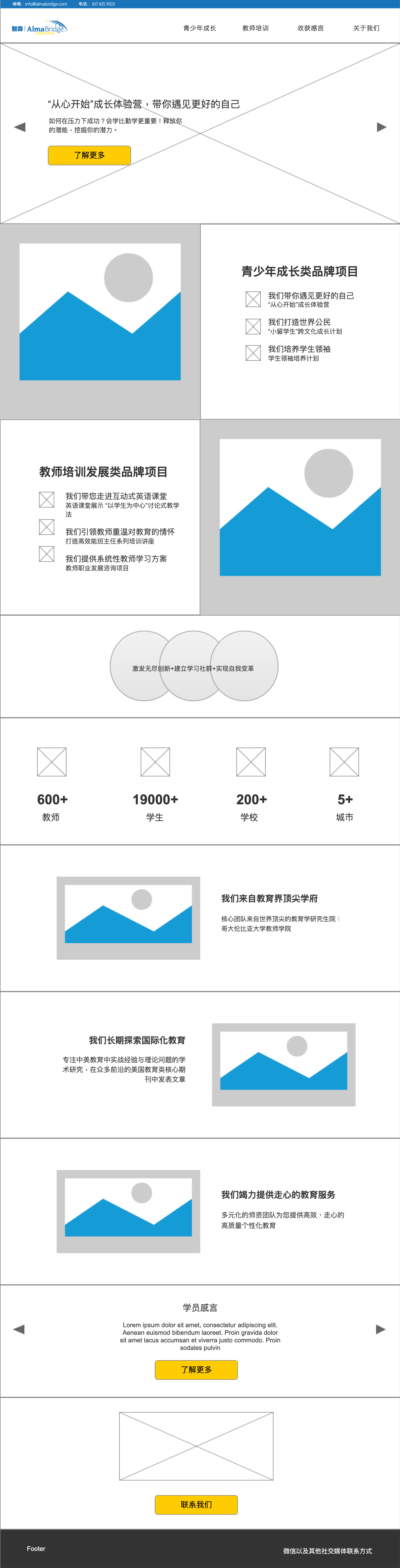 Almabridge Consulting specializes in customized professional development for teachers in China. By providing high-quality interactive & experiential teaching consulting services and dynamic training, Almabridge’s current business goal is to motivate creative students, cultivate reflective teachers, and build connected schools. The Overall tone of the brand is lively and with passion.