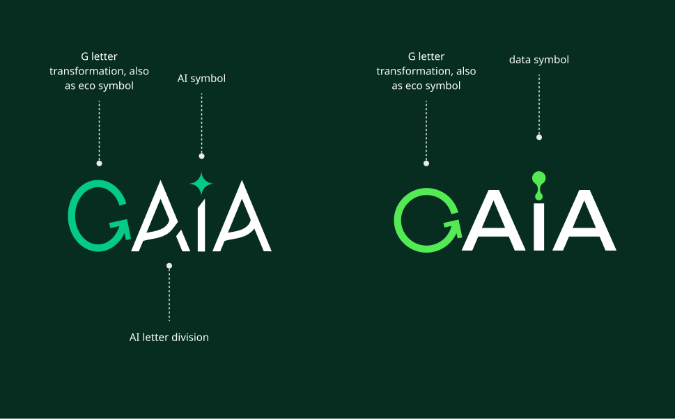 - Wordmark Logo – A full typographic design of “Gaia” with carefully selected typography and integrated visual elements.